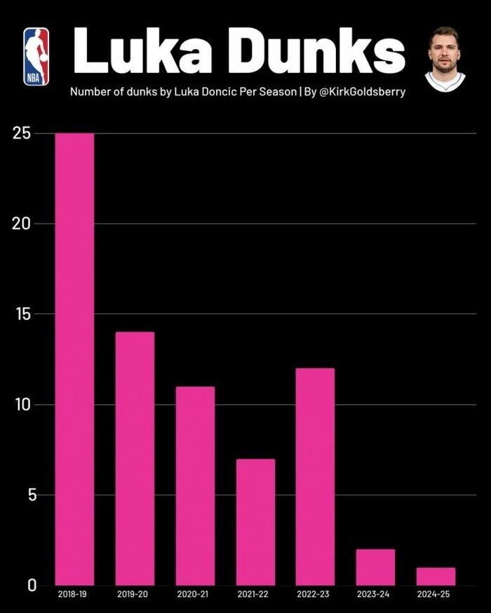 虽然东契奇进入联盟时可能并不以40英寸(约合101.6厘米)的垂直弹跳著称,但他确实曾经扣过篮。但作为一名湖人球员,东契奇还没有完成过扣篮。虽然扣篮总数可能无法完全说明一名球员的爆发力,但这项数据仍有一定的参考价值。在东契奇为斯洛文尼亚国家队效力期间,有传闻称他的运动能力看起来增强了许多。而且,这其中就包括了一些东契奇的队友们多年未曾见他完成过的扣篮。